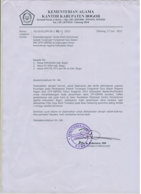 3. Bagi RA/Madrasah yang belum mengambil daftar penerima STF-GBPNS tahun 2013 agar